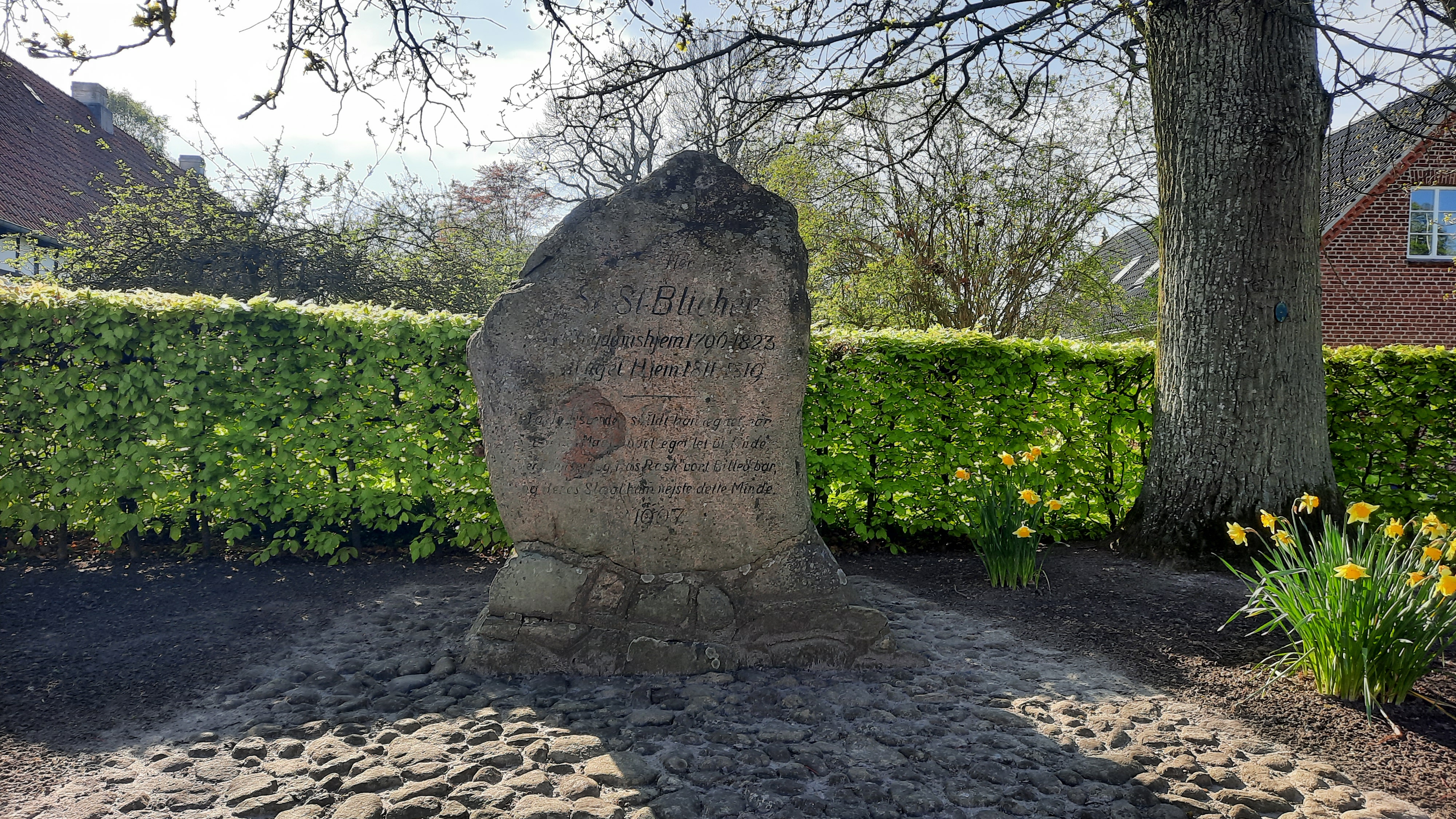 Blicherstenen, ved siden af præstegården er indviet den 27. oktober 1907.